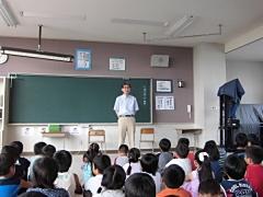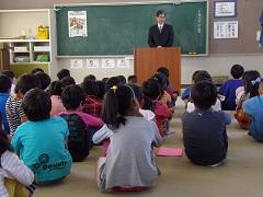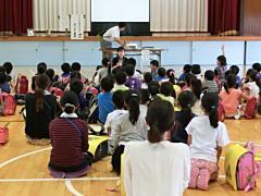 宇都宮市の不動産会社社長大塚訓平さんが来校し、「交通ルールを守って、命を守ろう」と交通安全のための講話がありました。また、これに合わせて、反射材が寄贈されました。子どもたちは熱心に話を聞いていました。