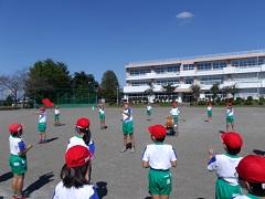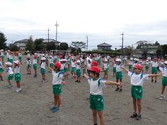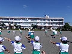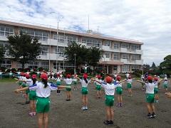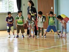 今日のスポーツタイムは、運動会の練習も兼ねてラジオ体操を行いました。残念ながら、まだまだ練習の必要があります。