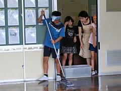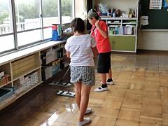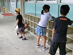 ワックス塗りと同時進行で、3~6年生が大掃除を行いました。子どもたちはよく働き、とてもきれいになりました。