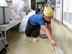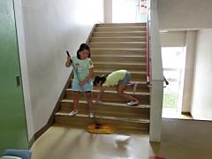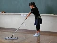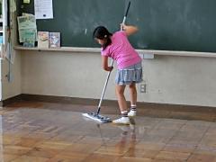 今日で夏休み前の授業が終了しました。6年生中心に協力して各教室のワックス塗りをしました。