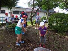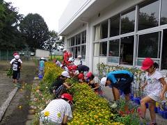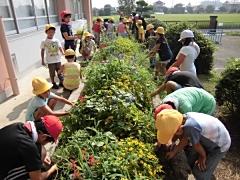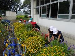 今日は、全校登校日でした。朝会の後、ふれあい花壇や教材園の除草を行いました。子どもたちは暑い中、集中して作業に取り組みました。作業後は、プールや学習を行い、下校しました。夏休み後半も健康に気をつけて有意義に過ごしてください。