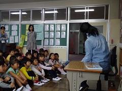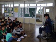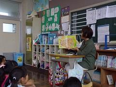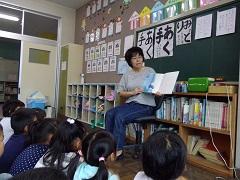 今週の朝の活動は読書です。特に今日は、ボランティアによる「読み語り」を行いました。子どもたちは熱心に聞いていました。