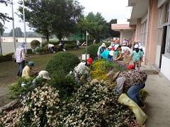 地域の老人会やシニアクラブによる環境整備作業が行われました。今年度は、児童も一緒に作業に参加し、地域の人々との交流の機会としました。さすが地域の方々は手早い作業で、あっという間にきれいになりました。また、子どもたちも、いろいろ話をしていました。