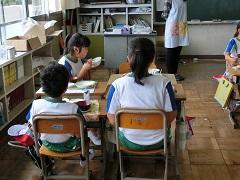 町立学校給食センターの栄養教諭が来校し、3年生に対して食指導が行われました。野菜に関する話を聞き、今日は、特に野菜を残さず食べていました。