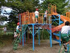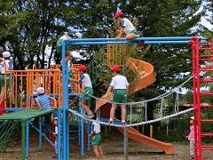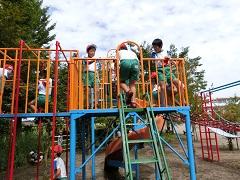 コンビネーション遊具の改修工事が終了し、使用できるようになりました。安全性が増すとともに、色も塗り替えたので新品同様となりました。さっそく、子どもたちは元気よく遊んでいます。