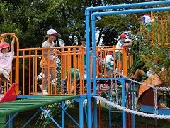 夏休み中に南門の改修工事があり、新しくなりました。また、コンビネーション遊具の改修工事を現在実施しています。