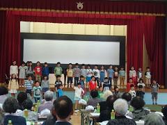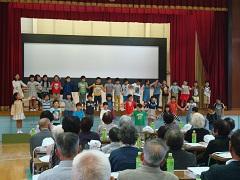 1年生から3年生で編成した「上高ニコニコ合唱団」が、27日(日)に本校体育館で実施された敬老のつどいに招待されました。当日は、校歌・しゃぼん玉・ドレミの歌・しあわせなら手をたたこう・にんげんっていいななどの歌を披露しました。また、特別ゲストとして、4年生の髙橋かなえさんが空手の形を披露しました。