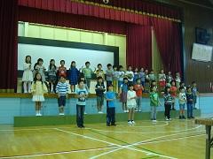 今日の朝の活動は、音楽発表集会を行いました。まず、25日に開催される地区学校音楽祭に参加する合唱部が「栄光の架橋」を披露しました。その後、全児童で「ビリーヴ」を合唱しました。みんなで心を合わせて笑顔で歌うことができました。特に合唱部の歌声はすばらしく本番が楽しみです。