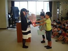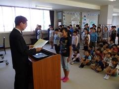 今日で第一学期が終了しました。終業式では、2・4・6年生の代表児童が作文発表をしました。どの児童も自分の意見をはっきり述べた、たいへん素晴らしい発表でした。式終了後、歯と口の健康週間における作品コンクールと地区学校音楽祭の表彰を行いました。第二学期は、10月13日(火)から始まります。