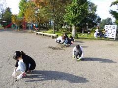 27日(火)に1・2年生が、校外学習でさくら市運動公園に行ってきました。まず、新しく建設された陸上競技場を見学した後、どんぐりを拾う活動をしました。1年生と2年生で協力してのびのびと秋探しができました。帰校する前に、遊具で全員仲よく遊ぶこともできました。拾ってきたどんぐりや松ぼっくりは、リースづくりに利用します。