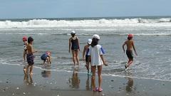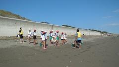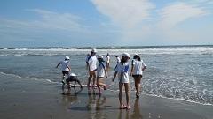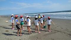 臨海自然教室2日目(29日)午前は、砂浜活動を行いました。雄大な太平洋にふれることができ大喜びでした。