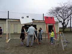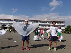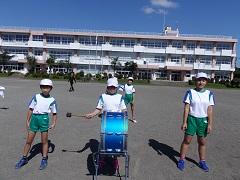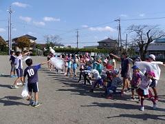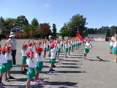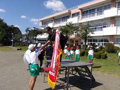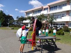 3~6年生で明日の運動会の準備をしました。子どもたちがよく作業をしたので予定より早く終了しました。最後に赤白の応援団長が本番に向けて気合いを入れました。