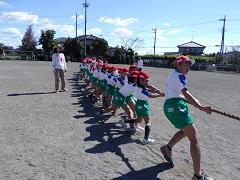 今日の業間の運動会練習は、全校綱引きの練習を行いました。まず、1・2年生が綱を引き始め、そこに3・4年生が応援に加わり、最後に5・6年生が加わります。1・2年生が一番たいへんですが頑張っています。