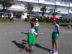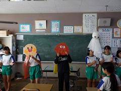 2校時に、1~3年生が、「Let's!ハロウィン・パーティ!」と「かけっこ ヨーイどん」の練習をしました。4~6年生は、その練習に合わせて係の動きの練習を行いました。