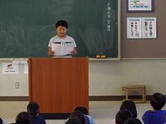 町立学校給食センターの学校栄養士が来校し、4年生に対して食指導が行われました。朝食の重要さの話を聞いて子どもたちも納得していました。