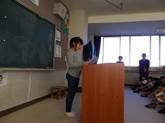 出産準備のため退職した大野講師の後任に、土肥講師が着任しました。今朝、新任式を行い、3年生を担任することになりました。
