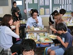 2年生と5年生で、生産者・提供者とのふれあい給食を実施しました。4名の生産者・提供者が来校し、子どもたちと一緒に給食を食べました。食材を育てる苦労や栄養などについて話題にしていました。なお、5年生は親子ふれあい給食も兼ねました。