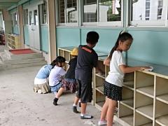 ワックス塗りと同時進行で、3~6年生が大掃除を行いました。子どもたちはよく働き、とてもきれいになりました。