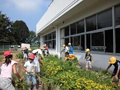 地域の老人会やシニアクラブによる環境整備作業が行われました。今年度は、児童も一緒に作業に参加し、地域の人々との交流の機会としました。さすが地域の方々は手早い作業で、あっという間にきれいになりました。また、子どもたちも、いろいろ話をしていました。