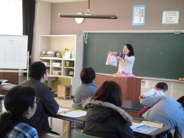 森本養護助教諭が、赤ちゃんの卵や成長、誕生などについて、映像も交えながて分かりやすく話をし、最後に赤ちゃん人形をだっこしました。