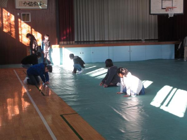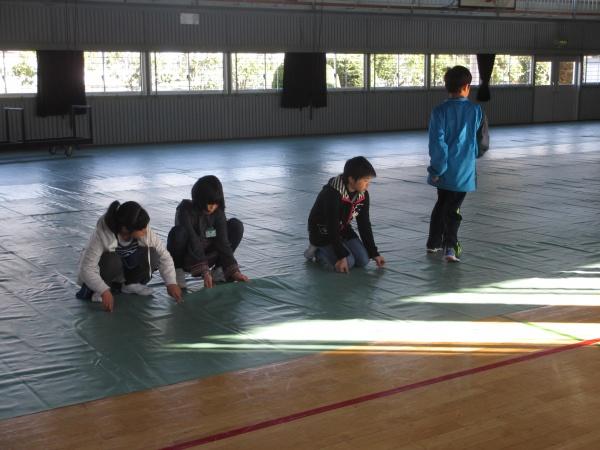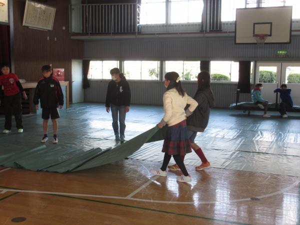 4・5年生が、卒業式の式場の床のシート清掃をしました。心を込めて、水ぞうきんでしっかりと拭いてくれました。気持ちいい環境で卒業式が迎えられます。