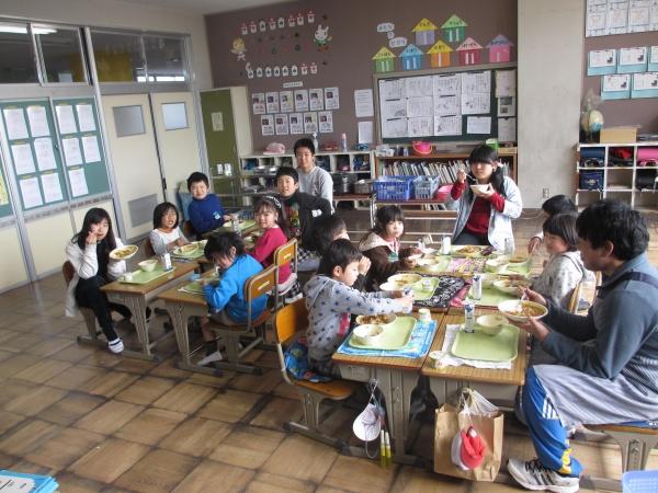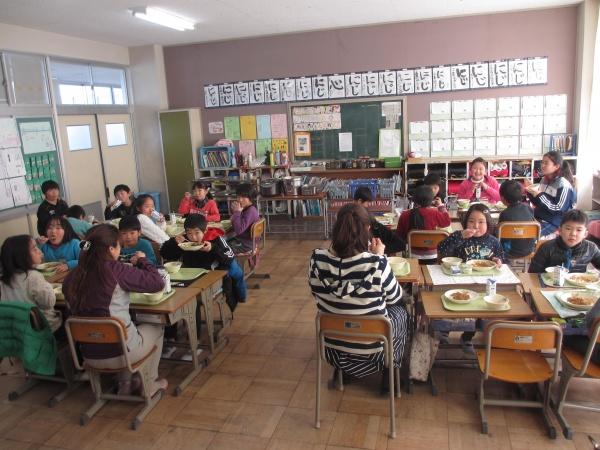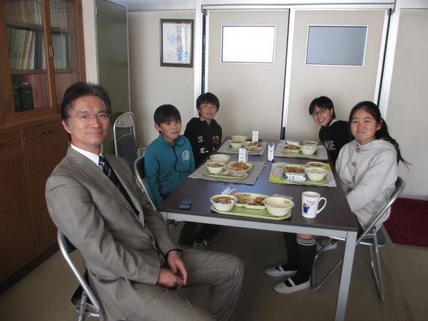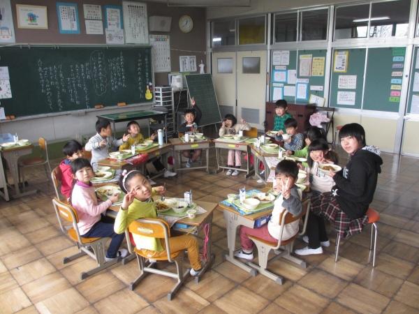 今日は、6年生が1年生教室と2年生教室、校長室に訪問し、一緒に給食を食べました。