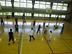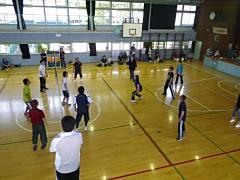 今日は雨天のため、体育館でドッジボールをしました。投げる方も逃げる方も必死です。