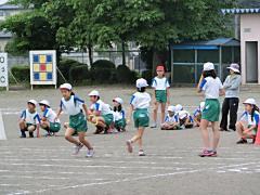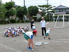 さて、今日は昼休みにたっぷりと遊べる「わくわくタイム」の日。学年毎、また、学年合同で、教師とともに中線踏み、ドッジボール、缶蹴り、長縄跳びなどの遊びに時間いっぱい興じていました。