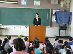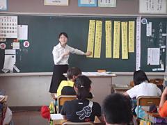 この活動は来年度町の全小学校で実施する予定ですが、その前に、他校に比べて外国語活動に力を入れている本校で先駆けて実施することになりました。1・2年生が2校時、3・4年生が3校時、5・6年生が4校時に分かれて行いました。