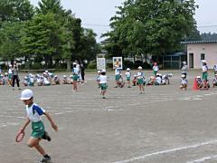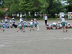 今日のスポーツタイムは、ふれあい班対抗の折り返しリレーを行いました。どの班も協力して全力で走っていました。優勝は、5班でした。