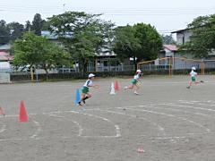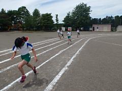 今日のスポーツタイムは、1~3年生は30m走を、4~6年生は80m走を行いました。