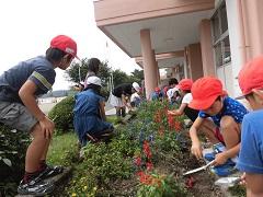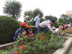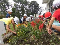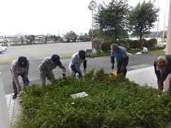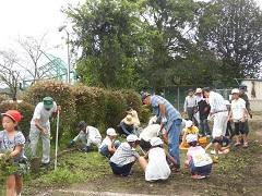 地域のシニアクラブ会員の方々が来校し、子どもたちと一緒にふれあい花壇や校舎前通路等の除草作業を行いました。シニアクラブの方々はさすがに手際がよく、あっという間にきれいになりました。子どもたちも負けじとがんばりました。また、作業をしながらいろいろな話をして交流を深めました。