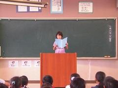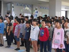 今日から第2学期が始まり、始業式を行いました。国歌斉唱に続き、1・3・5年の代表児童が作文を発表しました。今学期の目標などについて、第1学期終業式と同様にどの児童も大きな声でしっかりと発表できました。校長からは、王貞治・松下幸之助・イチローの言葉を例にして、「努力」についての話がありました。夢をつかむためには、簡単なことや平凡と思われるようなことをやり遂げ、おろそかにしないということが大切であり、そのようなことの積み重ねが「努力」であると確認しました。今日も大きな声で校歌を斉唱しました。
