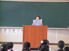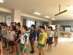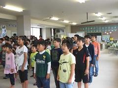 第1学期終業式を行いました。国歌斉唱に続き、2・4・6年の代表児童が作文を発表しました。今までの振り返りや今後の目標などについて、どの児童も大きな声でしっかりと発表できました。校長の話の後、大きな声で校歌を斉唱し終了しました。第2学期は10月10日(火)に始まります。