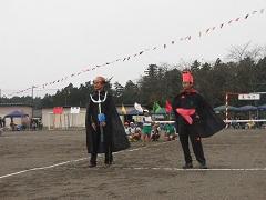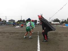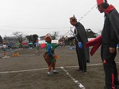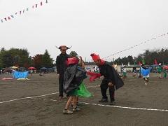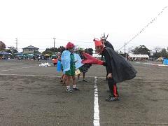競技が開始され、時折小雨がぱらつきましたが進行には全く影響がありませんでした。1~3年生での「Pirates  of  Kamitaka」では最後に仮装したPTA会長と校長にじゃんけんで勝つという難関が待ち構えていました。