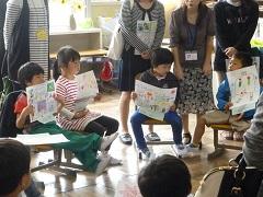 1・2年生がのびのび保育園との交流会を行いました。1年生は、劇「サラダでげんき」を上演しました。その見事な演技に保育園生も見入っていました。劇の後には、好きなサラダを一人一人発表しました。なお、この授業は、表現力養成講座の発表も兼ねています。
