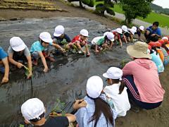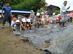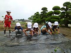 学校農園に1・2年生がさつまいもの苗を植えました。今から、収穫が楽しみです。