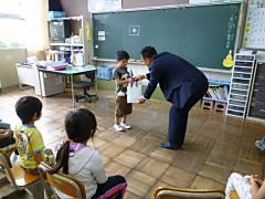 宇都宮市の不動産会社社長大塚訓平さんが来校し、「交通ルールを守って、命を守ろう」と交通安全のための講話がありました。また、これに合わせて、反射材が寄贈されました。子どもたちは熱心に話を聞いていました。