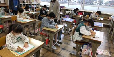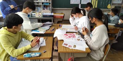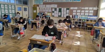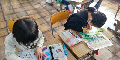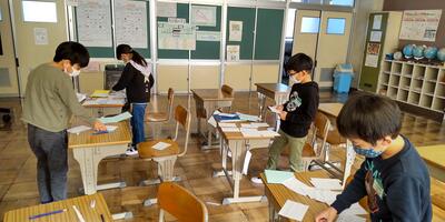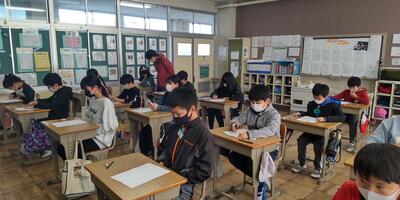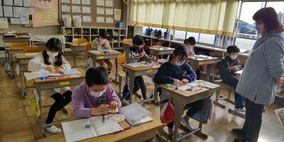 3年生は、年賀状の書き方を学習しています。