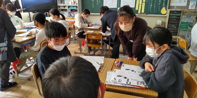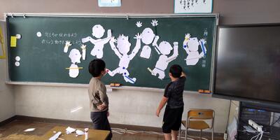 高学年ブロックでは、町人権擁護員の金氏弘雄様、古口道子様をお招きして、DVDを視聴しての話合い活動等を行いました。低学年ブロックでは、人権ワークショップ活動を中心に行いました。