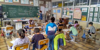 4年生は「算数」の授業です。二つの数量がどのように変わるかこれから考えていくのですね。