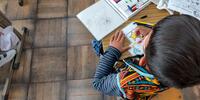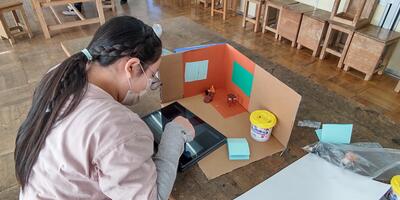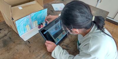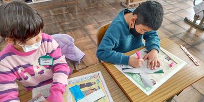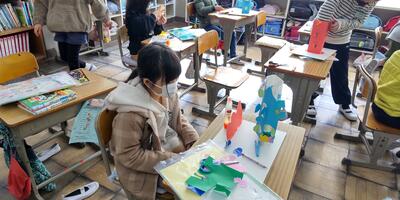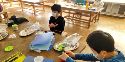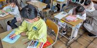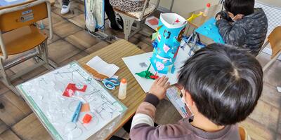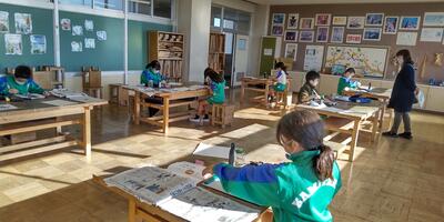 2年生は「図工」の授業です。窓から何が見えるのかな。