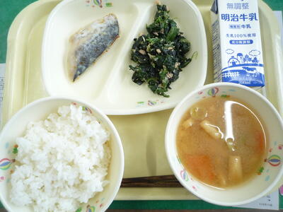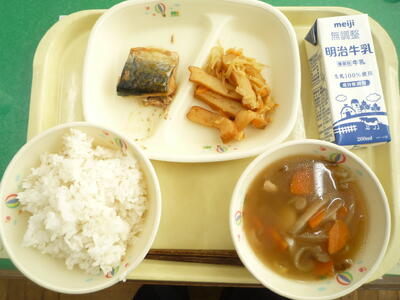 今日の給食は、むぎごはん、さばみそに、きりぼしだいこんのにもの、すいとんじると「和風」のメニューです。今日も美味しくいただきました。ごちそうさまでした。