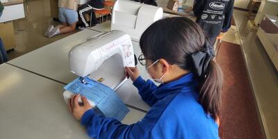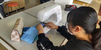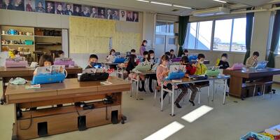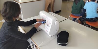 5年生は、「家庭科」の授業です。本日は、ミシンを使っての学習です。