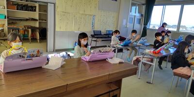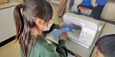 新しいミシン3台のうち1台は、「大字上高根沢様」から贈呈されました。2台は、「PTAバザー積立金」より購入させていただきました。児童用ミシンは、一般のミシンの機能に加え、本体に操作手順が詳しく表示されており子どもたちが操作しやすいように特別に開発された商品です。お陰様で子どもたちは、楽しく意欲的に取り組んでいます。