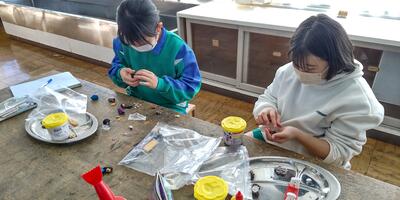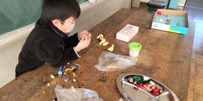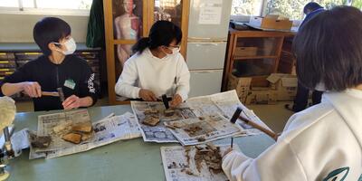 6年生は「理科」の授業です。化石を見つけているところのようです。