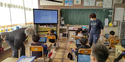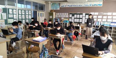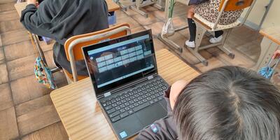 1年生2年生は、ICT支援の先生に教えていただき、アンケートに答えています。
