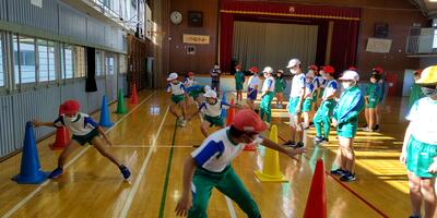 講師の先生をお迎えして、1年生2年生を対象に運動能力向上事業としてBOKSプログラムを実施しました。