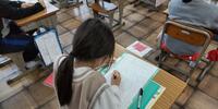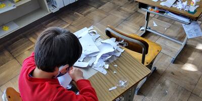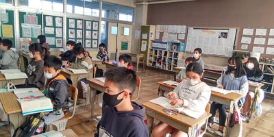 5年生は「国語」の授業です。意見文を書くために必要なことはなんでしょうか。