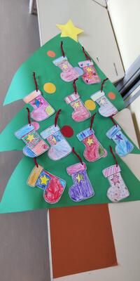2年生は「外国語活動」です。クリスマスカードを作りました。